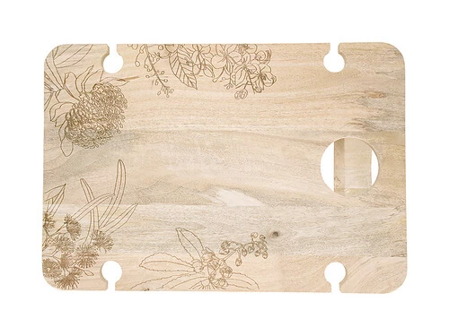 Get set for summer with this folding picnic table from the Golden Summer collection. Created in collaboration with Sydney artist ‘the Blck Pen’, it features a contemporary floral design and is generously sized at 58x40x24cm. This practical table will add style to your picnic spread while ensuring food and drinks stay off the ground. Made from sustainable mango wood, it folds away flat for easy storage and transport.